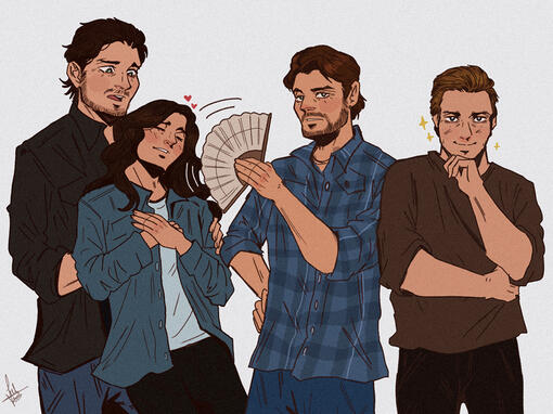 Drawing with your character(s) drawn two times or more. I also call it "character study" because you can see them in different styles. The background is simple and made accordingly, taking in mind their personality, vibe and/or story.